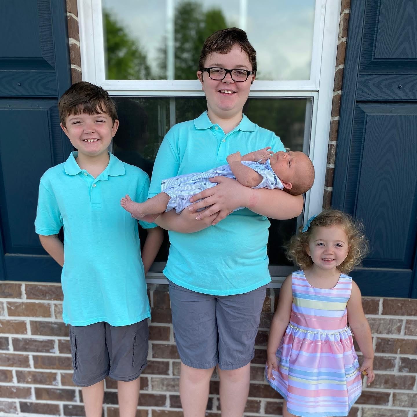 This picture was taken on Easter Sunday, 2020, while Christian was at our church building helping to livestream the service (which consisted of him and our other pastor). I had bought Easter clothes for the kids in advance of our move, but then there was nowhere to wear them. So I bribed the big kids with candy and had them get all dressed up and stand outside so I could take an Easter picture. They didn’t even have shoes on.