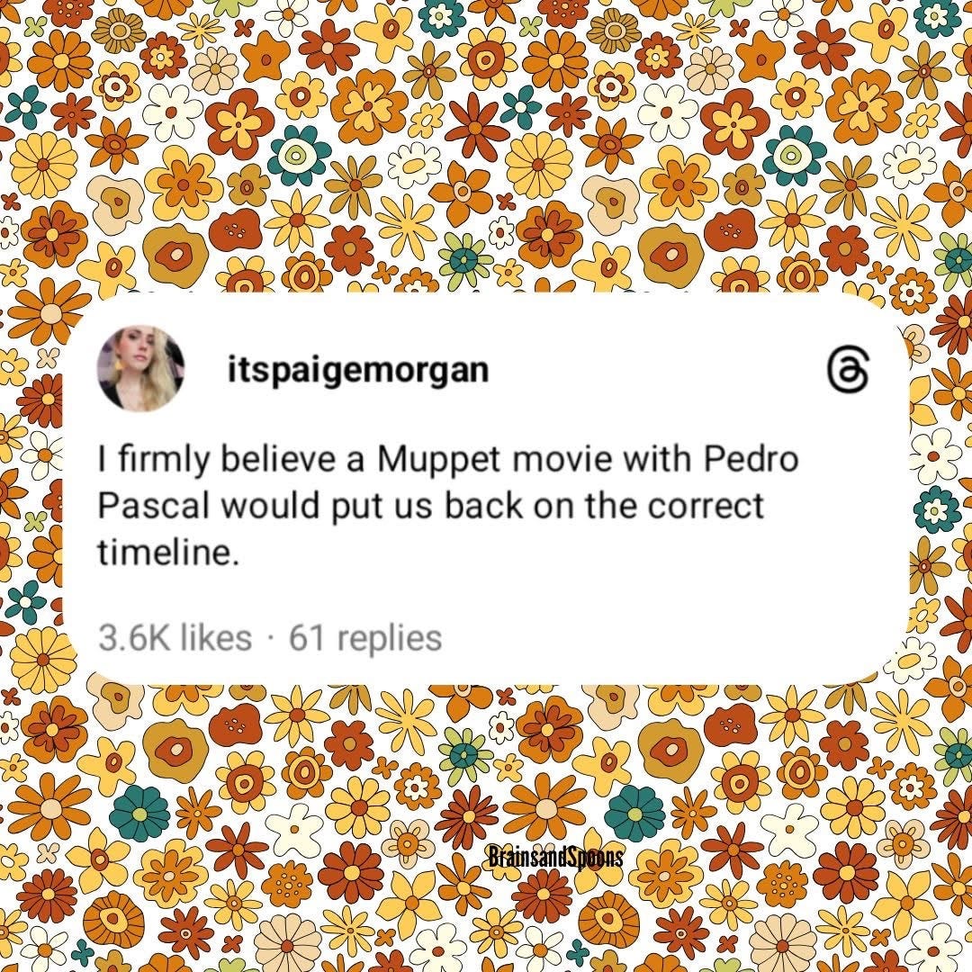 As soon as we finish the show we’re currently watching, Christian and I will be watching The Last of Us, otherwise known as Pedro’s show. I love him so much and this comic and tweet both spoke to me.