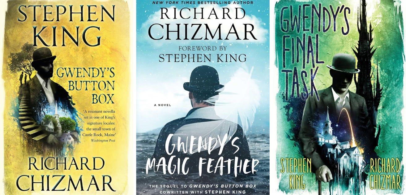 The Gwendy’s Button Box series consists of three books: Gwendy’s Button Box by Stephen King, Gwendy’s Magic Feather by Richard Chizmar, and Gwendy’s Final Task by Stephen King and Richard Chizmar. (I don’t know why Stephen King isn’t listed as an author on the second book.)