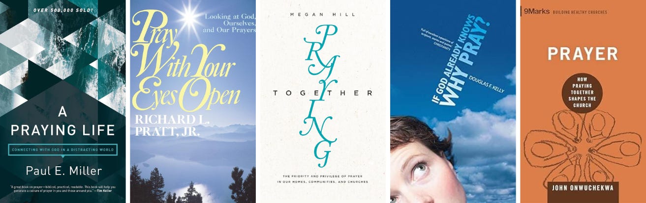 Both Praying Together and Prayer deal more with praying with others and the importance of corporate prayer, while the other three are more about one’s individual prayer life.
