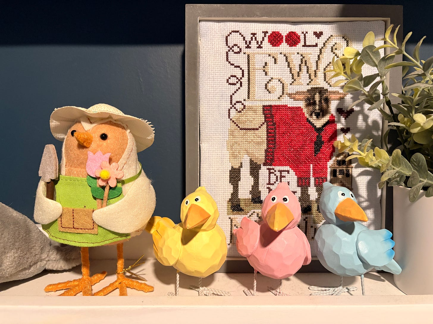 The shelves in the Dopamine Den got a spring refresh this month when I pulled out some of my favorite little bird figurines.