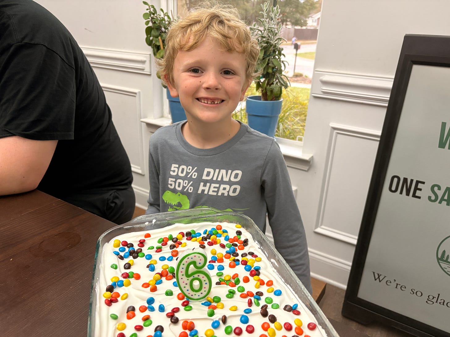 It was a real rollercoaster of a month, though, because our youngest son turned 6! He was only ten days old when we moved to Georgia, so every year his birthday also commemorates another year in this place we have come to call home. We had a family birthday dinner at home with an ice cream cake made by my amazing mother-in-law, and we also celebrated at the park with his friends. The park party also included a visit by a snake named Clarice who belongs to a friend from church, because the ONE THING Noah wanted at his party was for there to be a reptile. I have no pictures of this for obvious reasons.