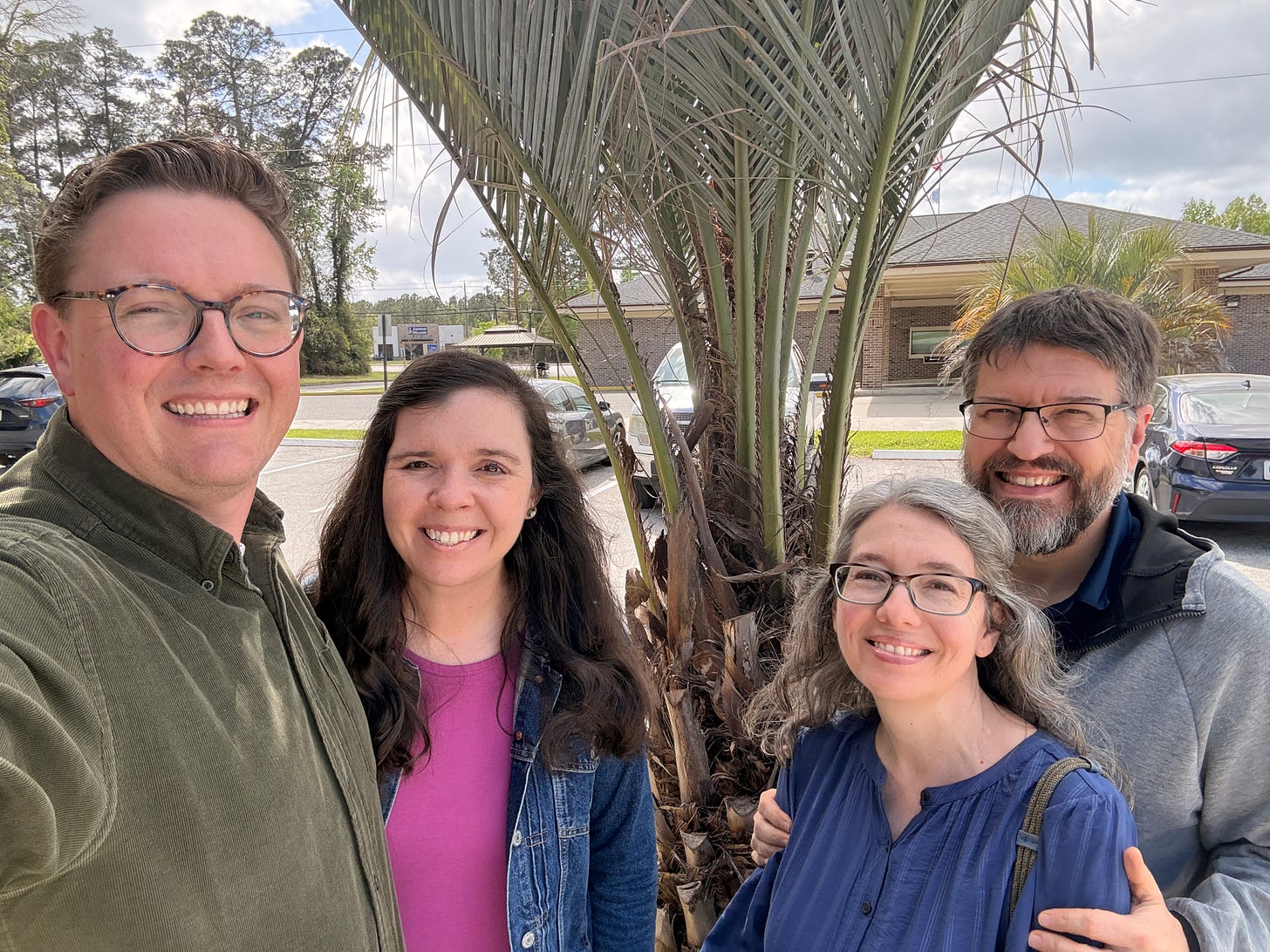 Our month had a delightful ending with a visit from some friends we have known for more than a decade. Christian and Steve went to seminary together in the early 2010s, and they have stayed in touch ever since. Christian and Steve have hung out over Zoom for years as part of a study group, but they hadn’t seen each other in person since 2014. They planned an anniversary trip to Savannah so they could come to our church and take us to lunch. What a gift.