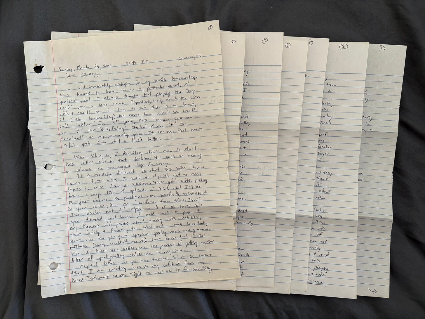 His letter to me was only seven pages front and back, but it was full of as much mundane information as mine.