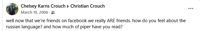 Chelsey, you are a good writer. Jennifer and I met in December 2005 and formed our relationship in 2006. We were married within 1 year. I’ve never read anyone write about how relationships are formed and developed in relation to the prevailing communication technology of the day but it turns out this stuff is really important. Your timeframe was close to ours. We used a lot of AIM and email but I was convinced that Facebook was not a good place for Christians. I actually told Jennifer that I wasn’t interested in dating anyone who would be on social media! She deleted here MySpace and Facebook accounts! That is amazing because that was a totally inappropriate request. I still don’t like social media but we use it to buy and sell and do a little keeping in touch. Your story is sweet and proves that I was wrong. God will work to build the families He has for ordained. You and Christian are rocking it. Jennifer recently celebrated 18 years. Let’s keep our marriages and families strong.