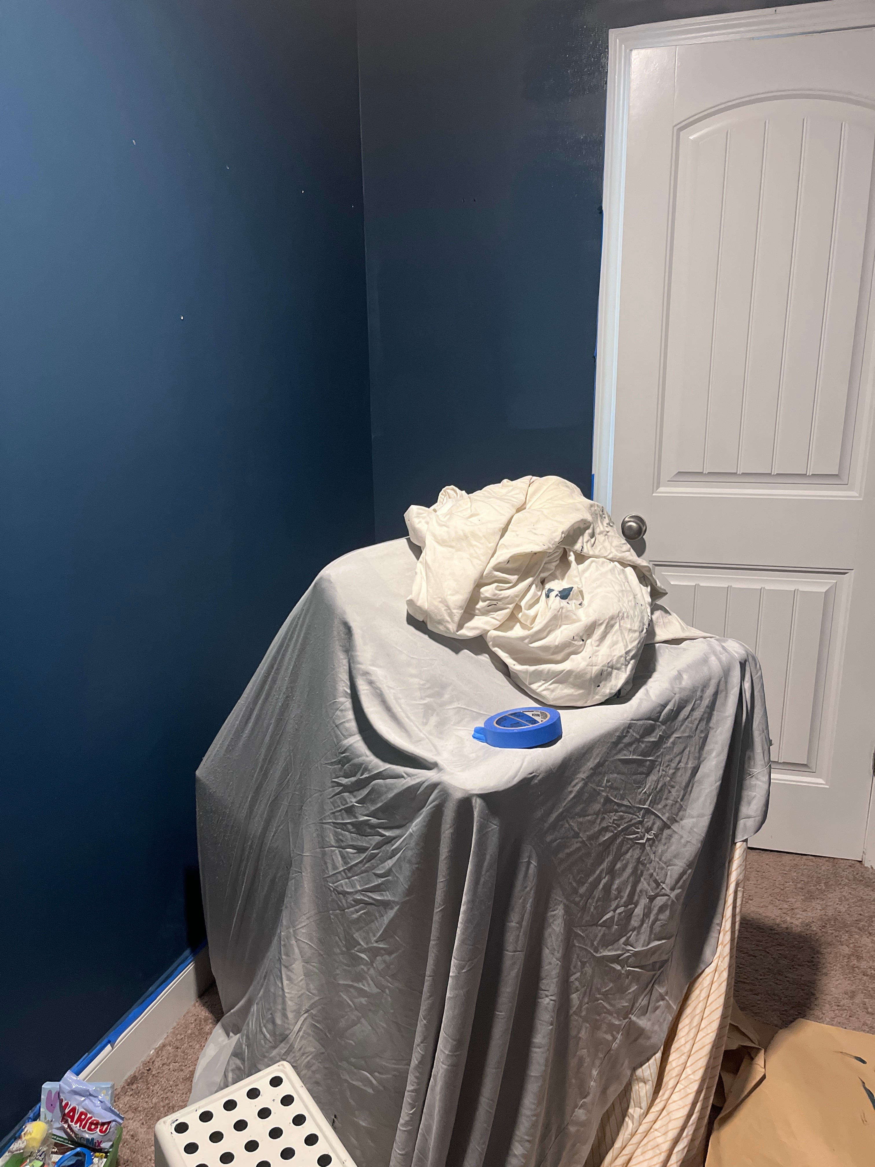 The room has no windows, and so I knew that whatever color I chose to paint would make the room seem even darker. Against all recommendations, I went with a deep blue color. (I can’t remember the name, sorry). “It’s going to be so dark in there!” everyone said. “Yes,” I said. “I know.” I decided this room was going to be my version of a sensory deprivation chamber. Dark, quiet, cozy, filled with all of my favorite things.