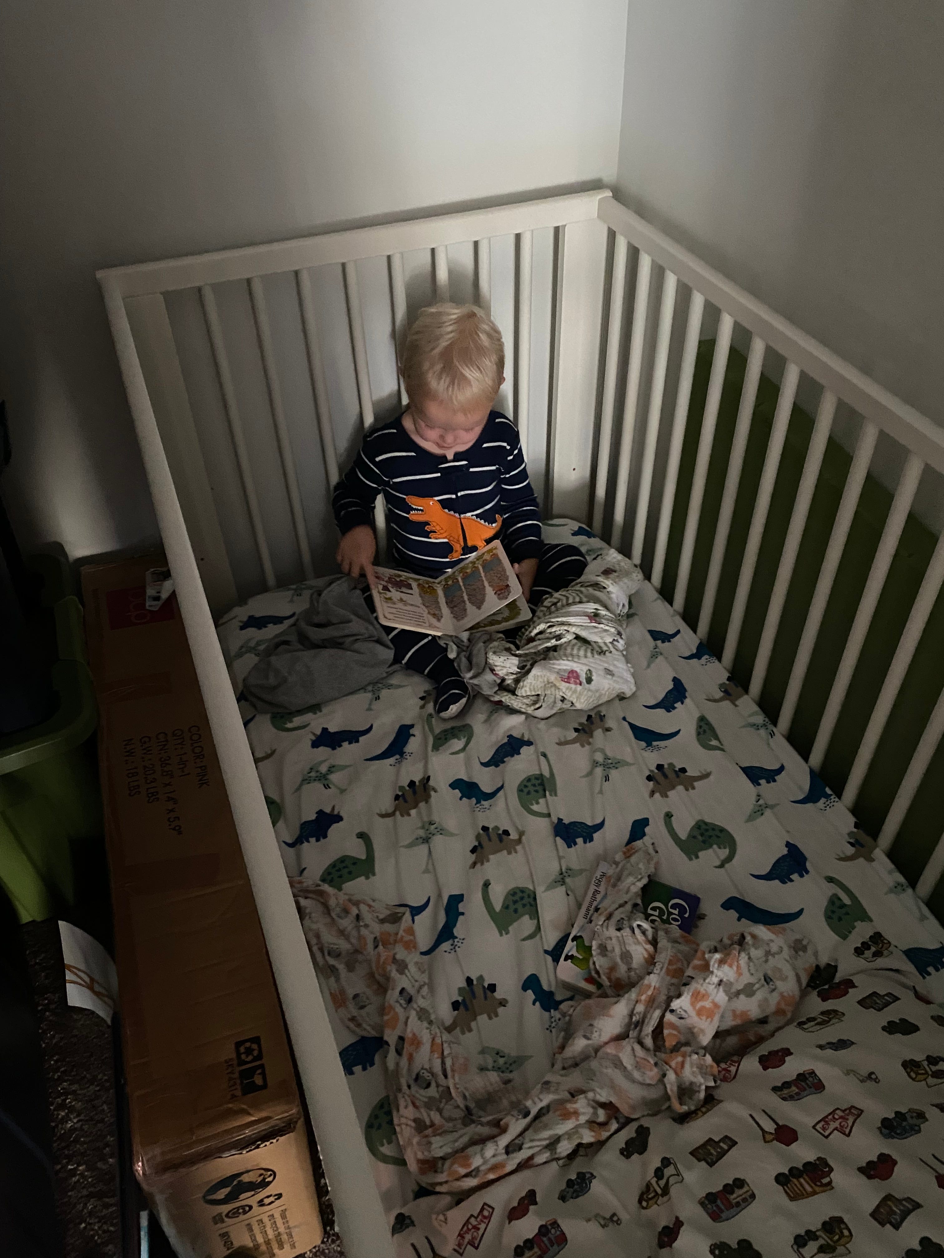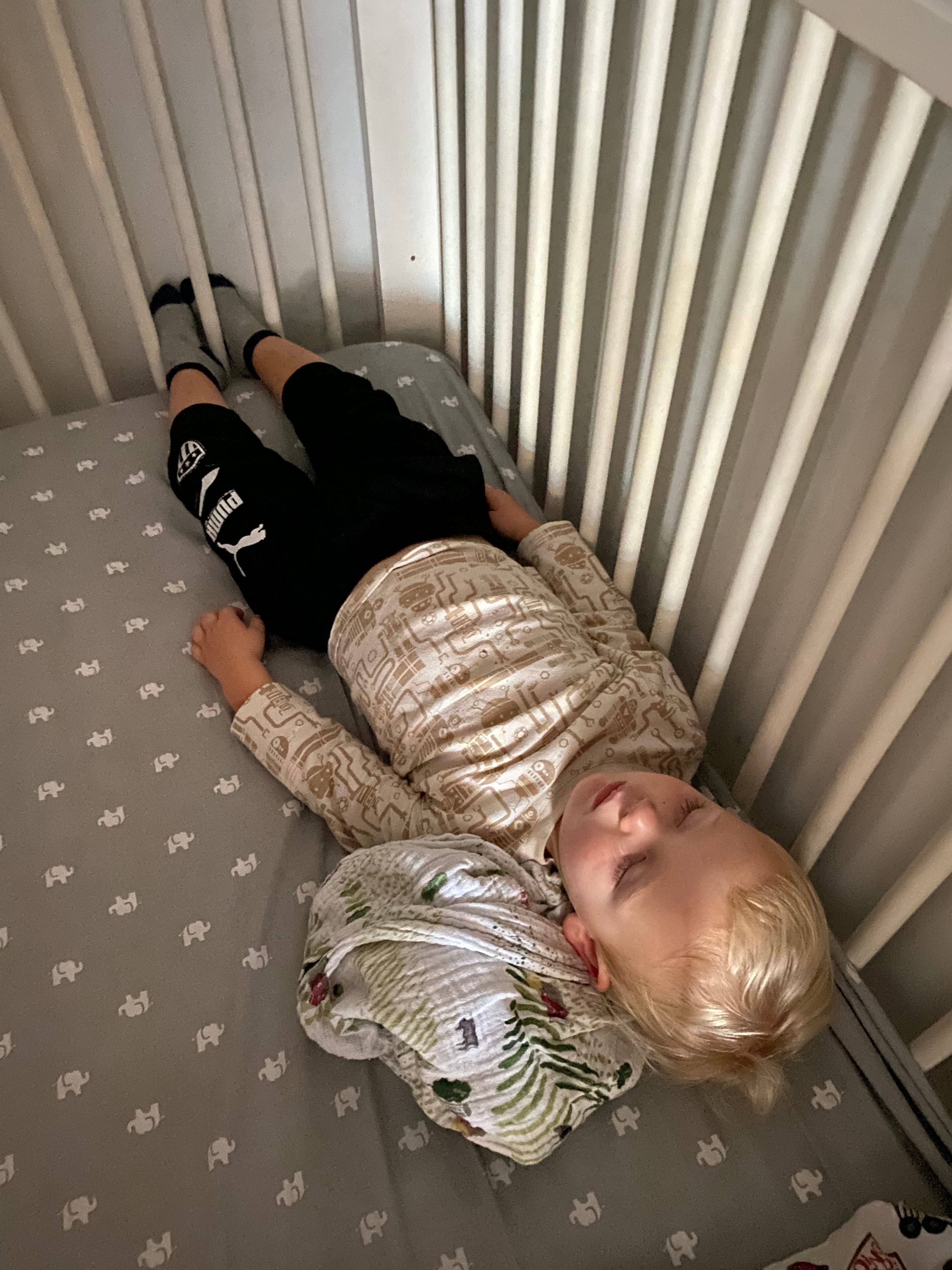When he outgrew the pack-and-play, he was still rocking. We needed to move him to a crib, and it would have been the ideal time to try moving him into his sister’s room again, but I was afraid the rocking would keep her awake at night or wake her up in the morning. By then we had determined the rocking was a kind of self-soothing, so he often did it before he fell asleep and then when he woke up, before I came in to get him up.