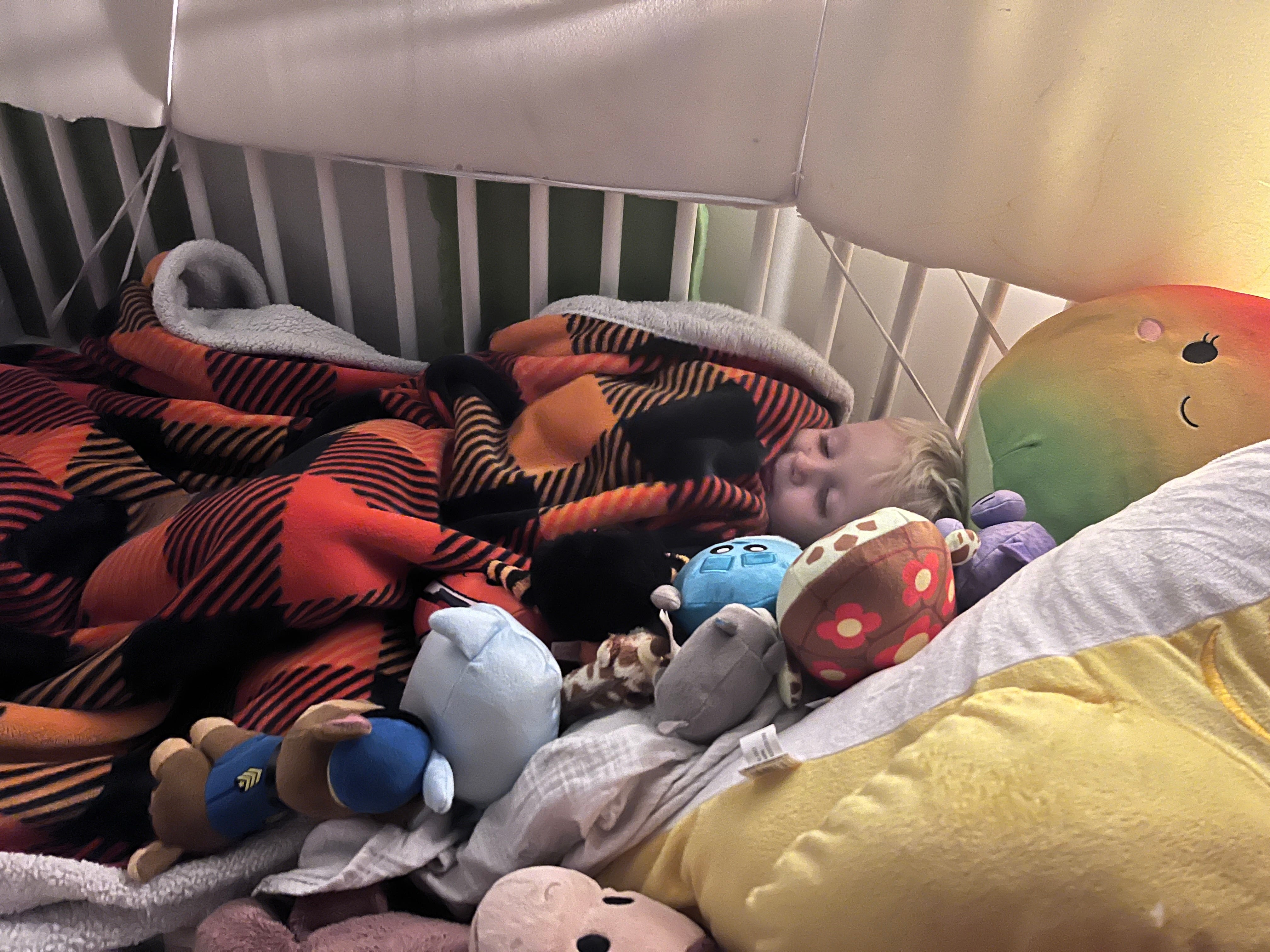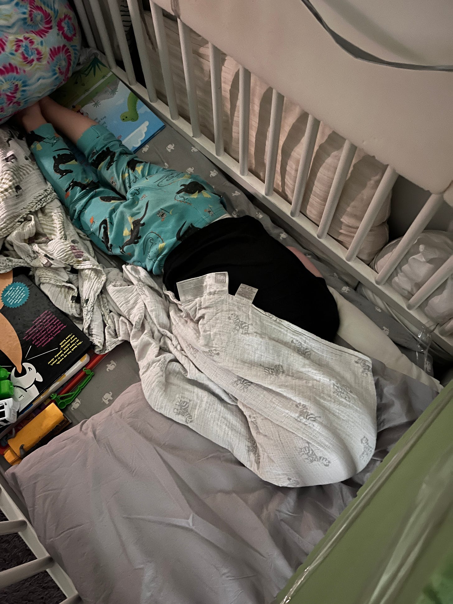 In closing, I’m going to give you one more picture of Noah sleeping in the crib in this closet, because it is my favorite one.