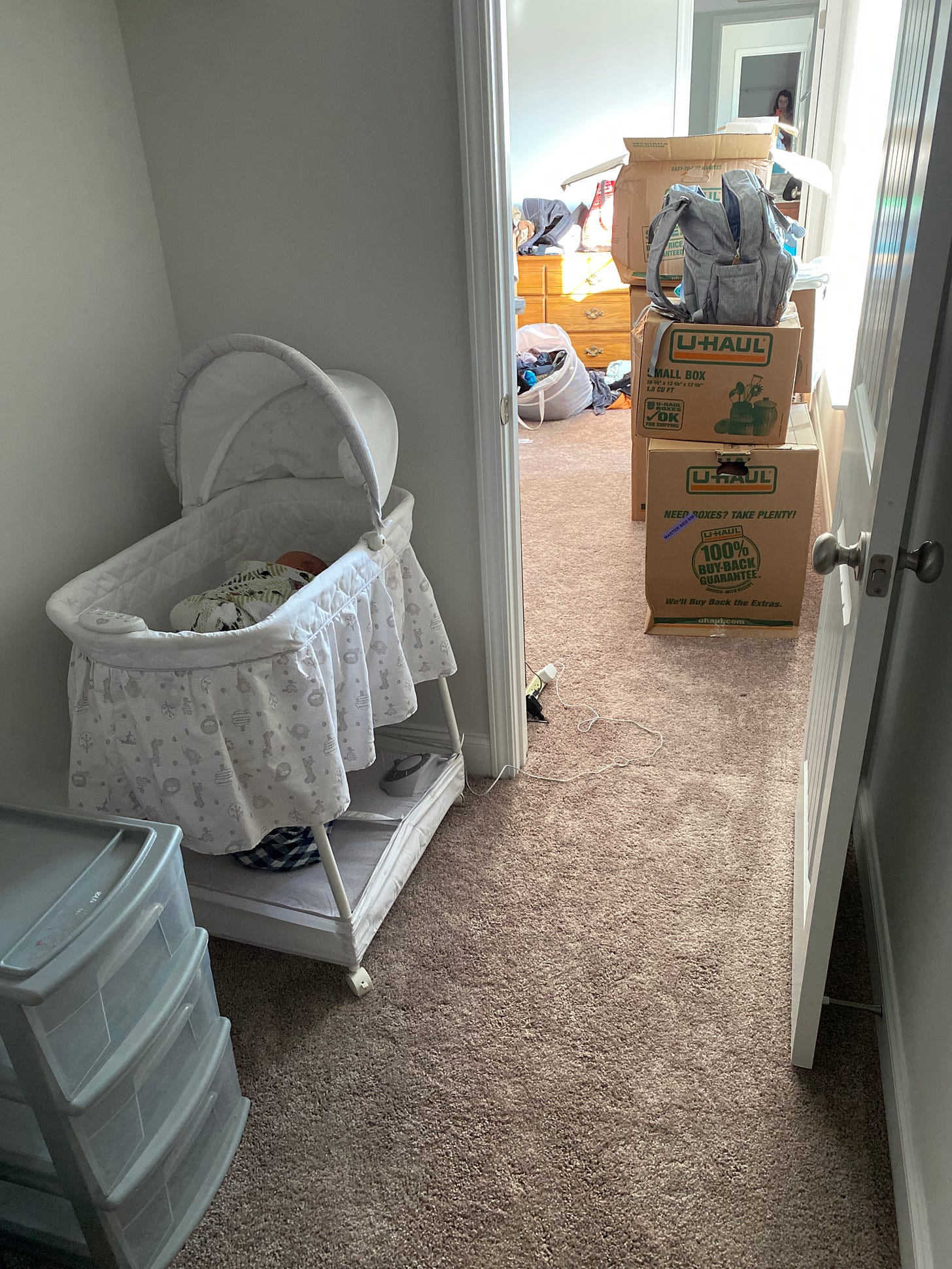 When we moved in a little over a month later, our fourth baby was 10 days old and we did indeed fit his bassinet and him into the closet. Our long-term plan was for him and his older sister to eventually share a room, but I wasn’t going to attempt that until he was sleeping through the night.