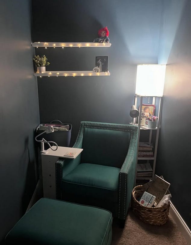With these items purchased and assembled, I finally had what would be the preliminary version of the Dopamine Den—a name a friend jokingly gave it, but that stuck. My children even call it the Dopamine Den now, and I’m not certain my younger two even know what that means.