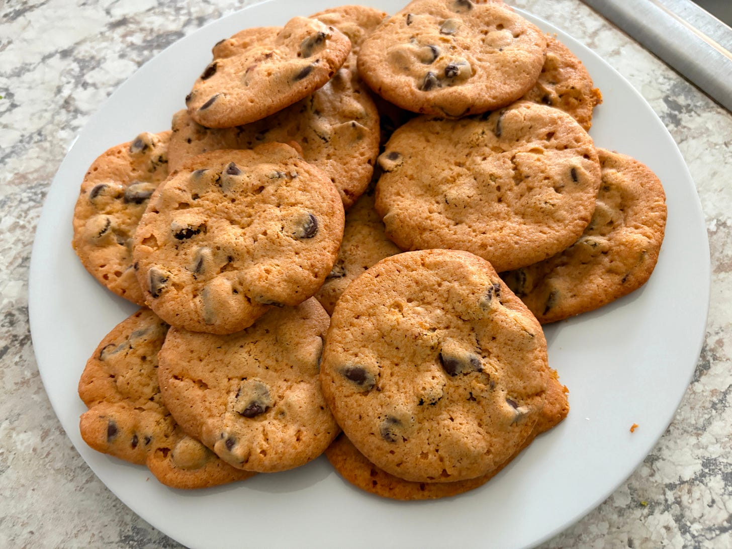 Instant Pot pulled pork, Instant pot mac and cheese, roasted green beans (from frozen), homemade hamburger buns, egg-free chocolate chip cookies