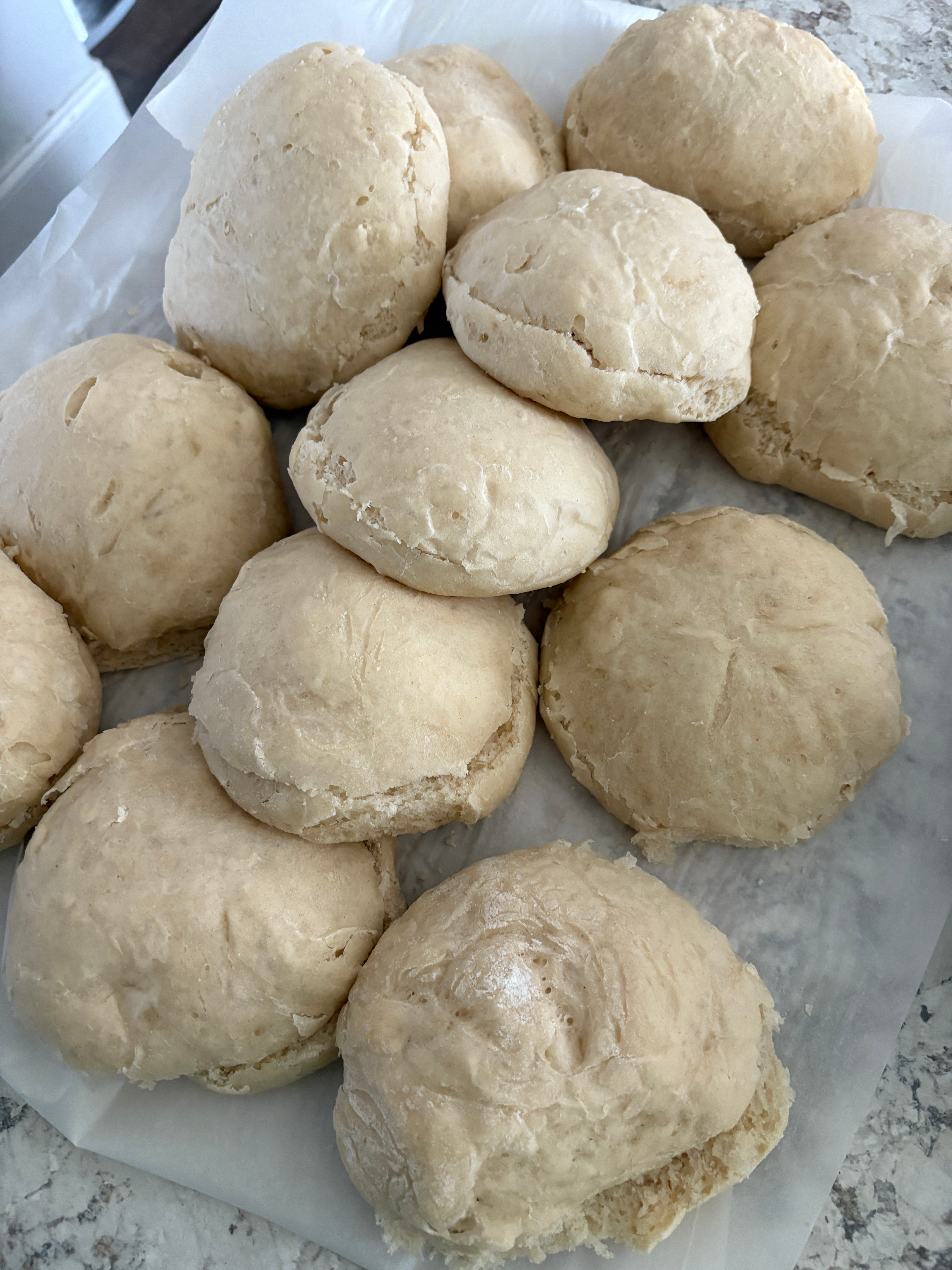 I also made hamburger buns for that same dinner because then I wouldn’t have to buy them. I had all the ingredients, but considering how cheap hamburger buns are, I’m not sure it was worth it. That said, they tasted way better than storebought, and we didn’t use them all, so I now have homemade hamburger buns in the freezer for another meal.