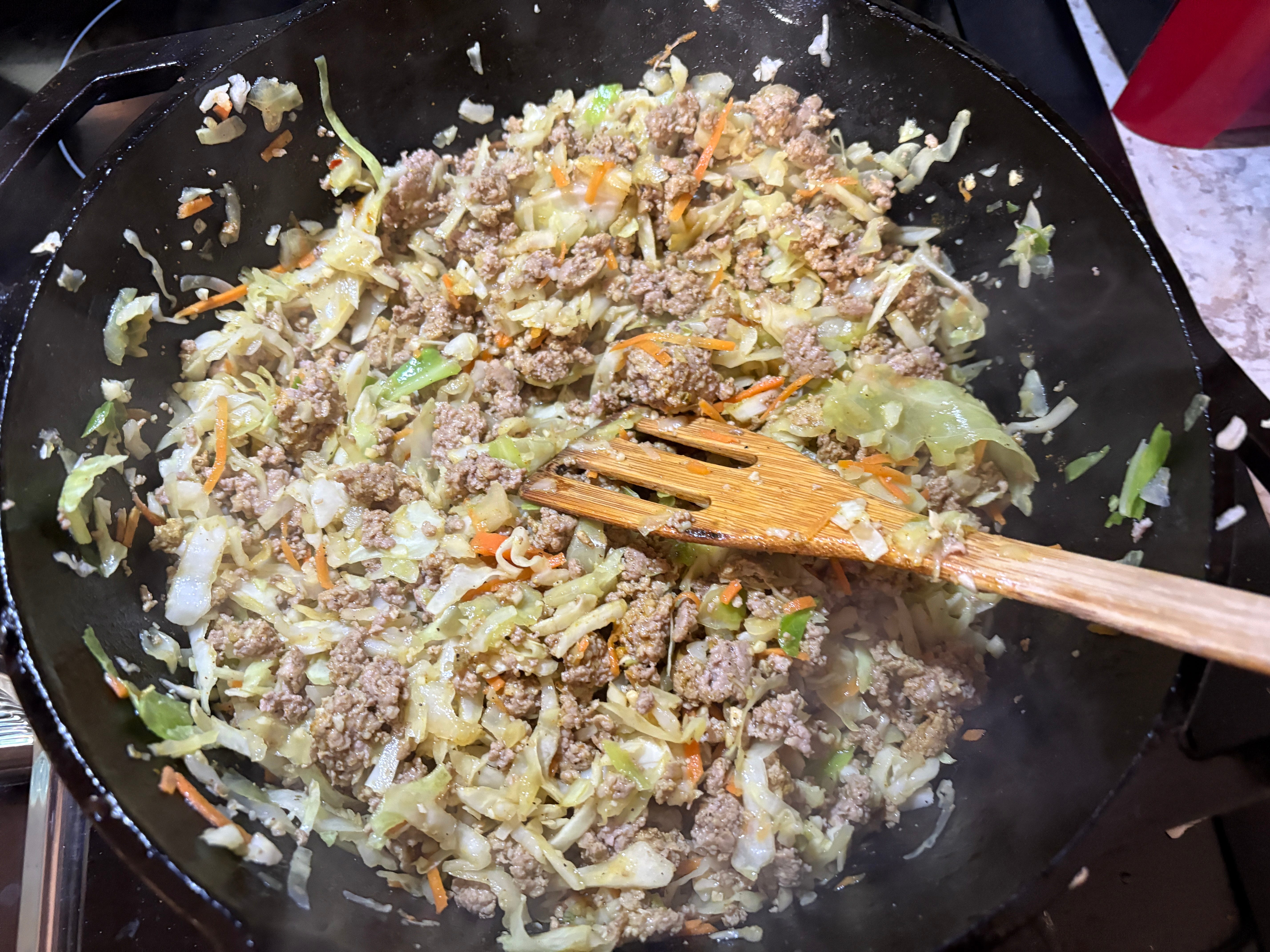 Over the weekend, I made curry pork and cabbage (no recipe—it’s literally just ground pork, coleslaw mix, and curry powder and seasoning) that made 6 servings for Christian and I to eat for lunches during the coming week.