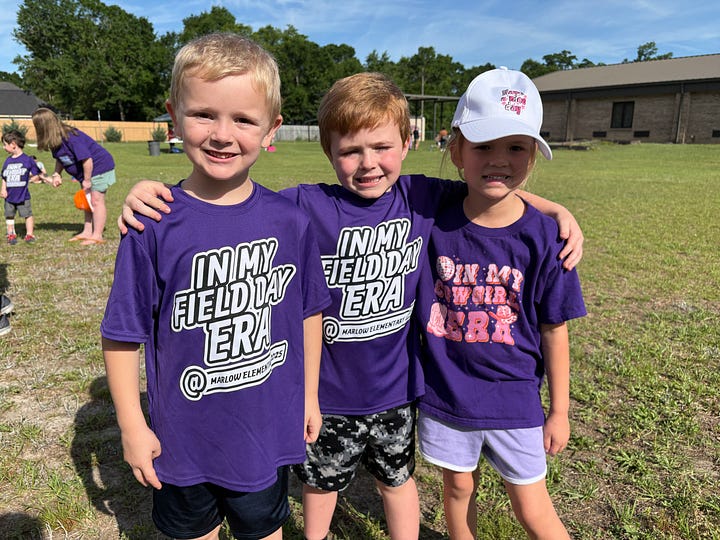 The little kids’ year ended with field day, and both of them loved getting to be outside and do tons of activities with their friends. While I didn’t get any picture, the boys also had a week of spring marching band camp after school and played during the spring football game. Stephen also got to play in the band for the high school’s graduation ceremony.
