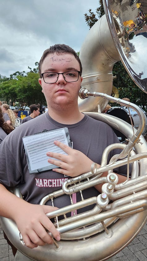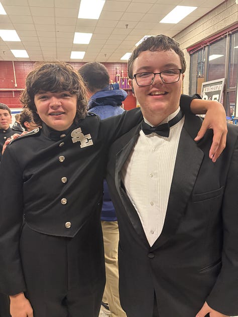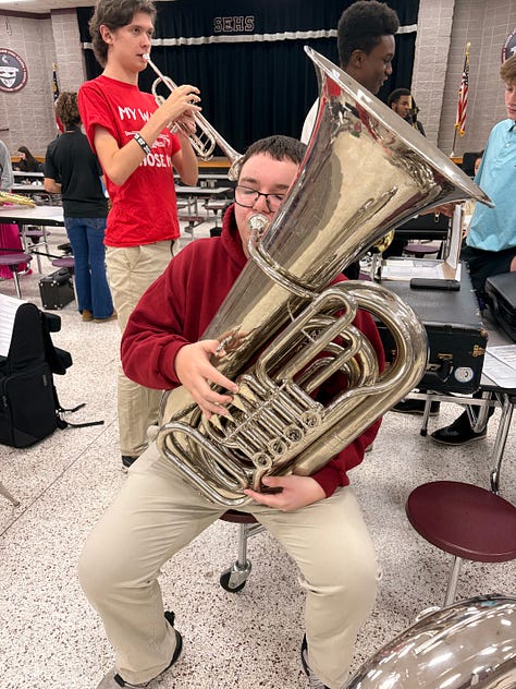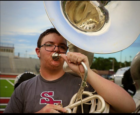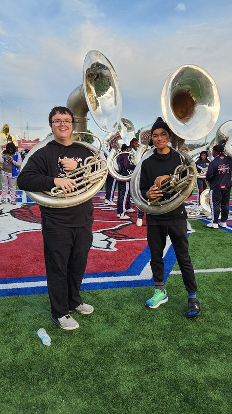 In our neck of the woods, October is referred to as “Band-tober.” Almost every weekend that month saw the boys busy Friday nights at football games and Saturdays at competitions. Stephen continued to enjoy his sousaphone and served as the section leader while Cohen helped hold down the percussion section as part of the front ensemble.