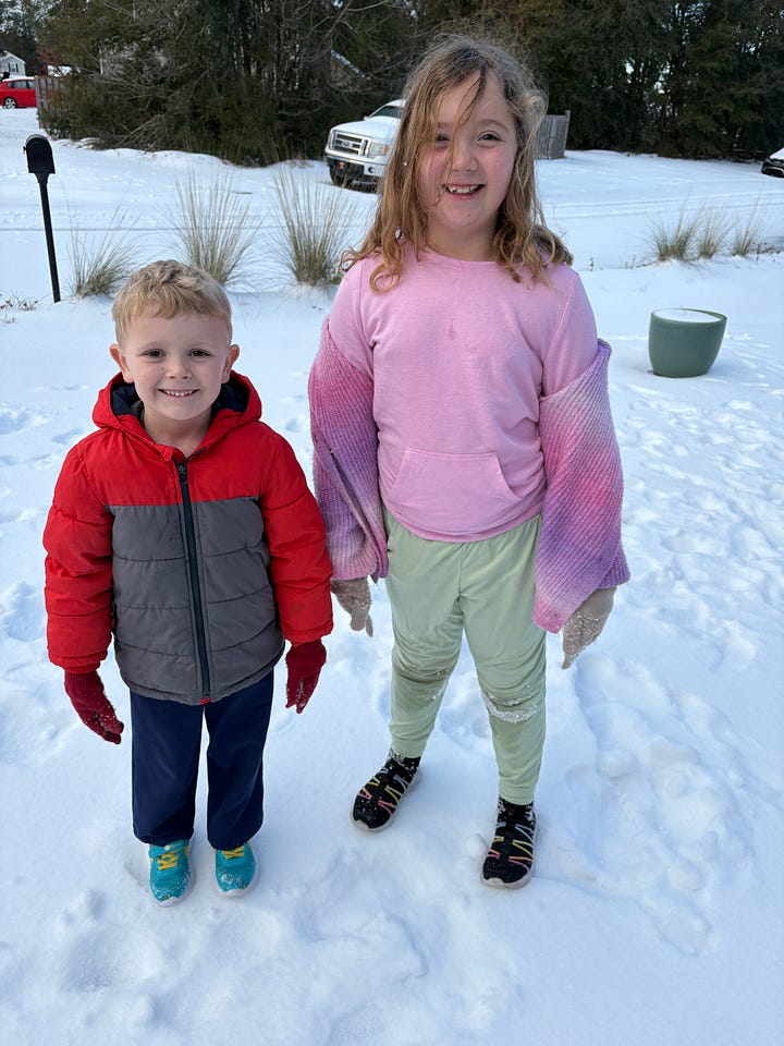 The big news in January for our usually very warm area of south Georgia was SNOW! Our younger two had never seen snow and ever since January have asked me multiple times if it’s going to snow again this year. The kids missed an entire week of school and it will go down in history as the time we sledded down snow covered dirt mounds on boogie boards.
