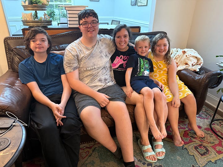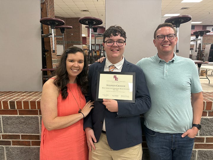 May brought all the end of the school year things and a few more holidays. Cohen turned 14 (and I took zero pictures because he doesn’t love having his picture taken). For Mother’s Day, Christian and the kids made the dinner of my choice and served it to me and I got a rare photo of me and all four kids. Stephen’s first year of high school band class wrapped up and he won an award for “Most Improved” on the tuba in Symphonic Band.