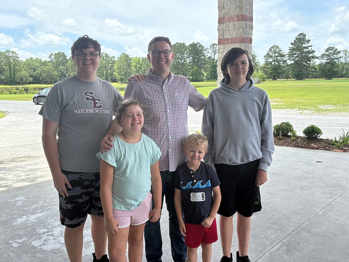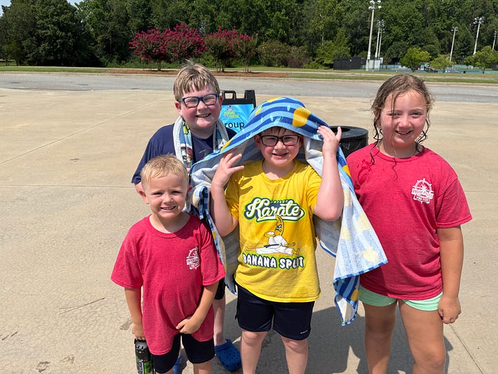 June came—and with it the glorious summer. Stephen got his permit and I tried not to cry. We celebrated Father’s Day. The little kids and I got to have lots of fun outings to the beach and to a water park in nearby Statesboro while the boys were at youth camp and Boy Scout camp. The littles also did a week of Vacation Bible School at a nearby church and they did swim lessons at the Y. (I actually made a note for myself for this coming summer not to try to do so much. It was way too much.)