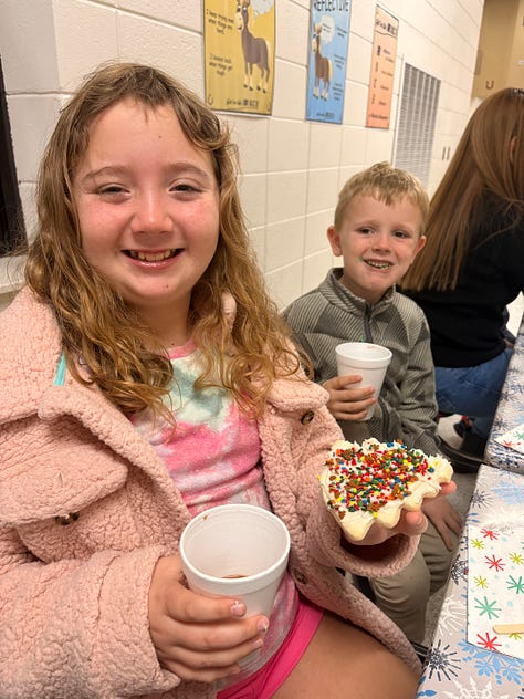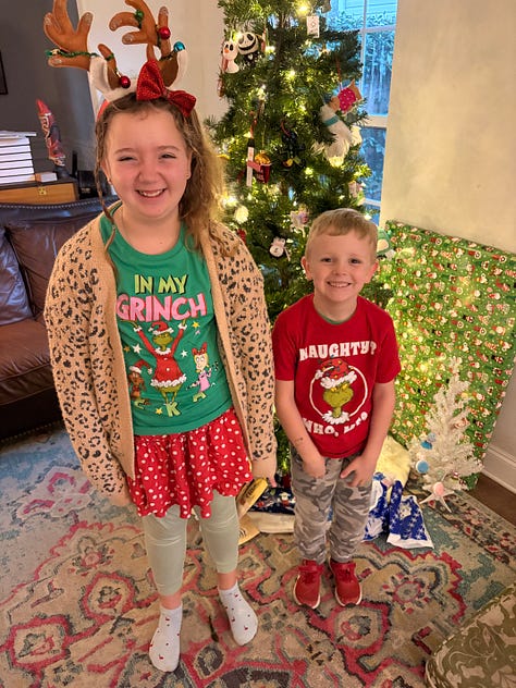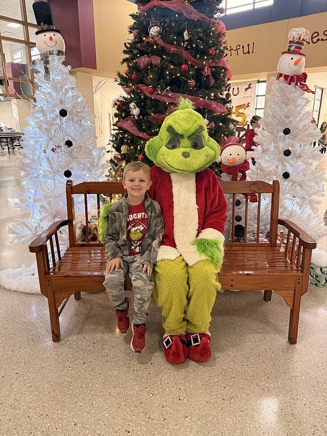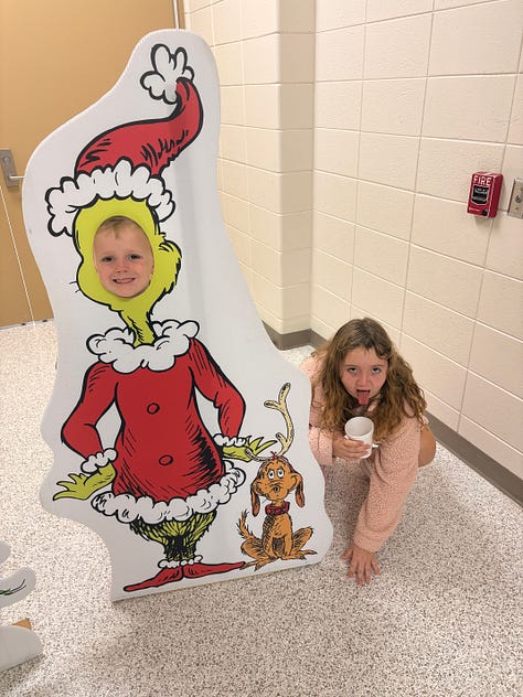 December in elementary school in our area means you have to put your seatbelt on because it’s going to be a wild ride. There was cookies and cocoa with Santa one night after school. Then, the last week of school, there was Grinch Day, pajama day, and Christmas parties on the very last day of school. It was a lot and Zoe and Noah loved every second of it.