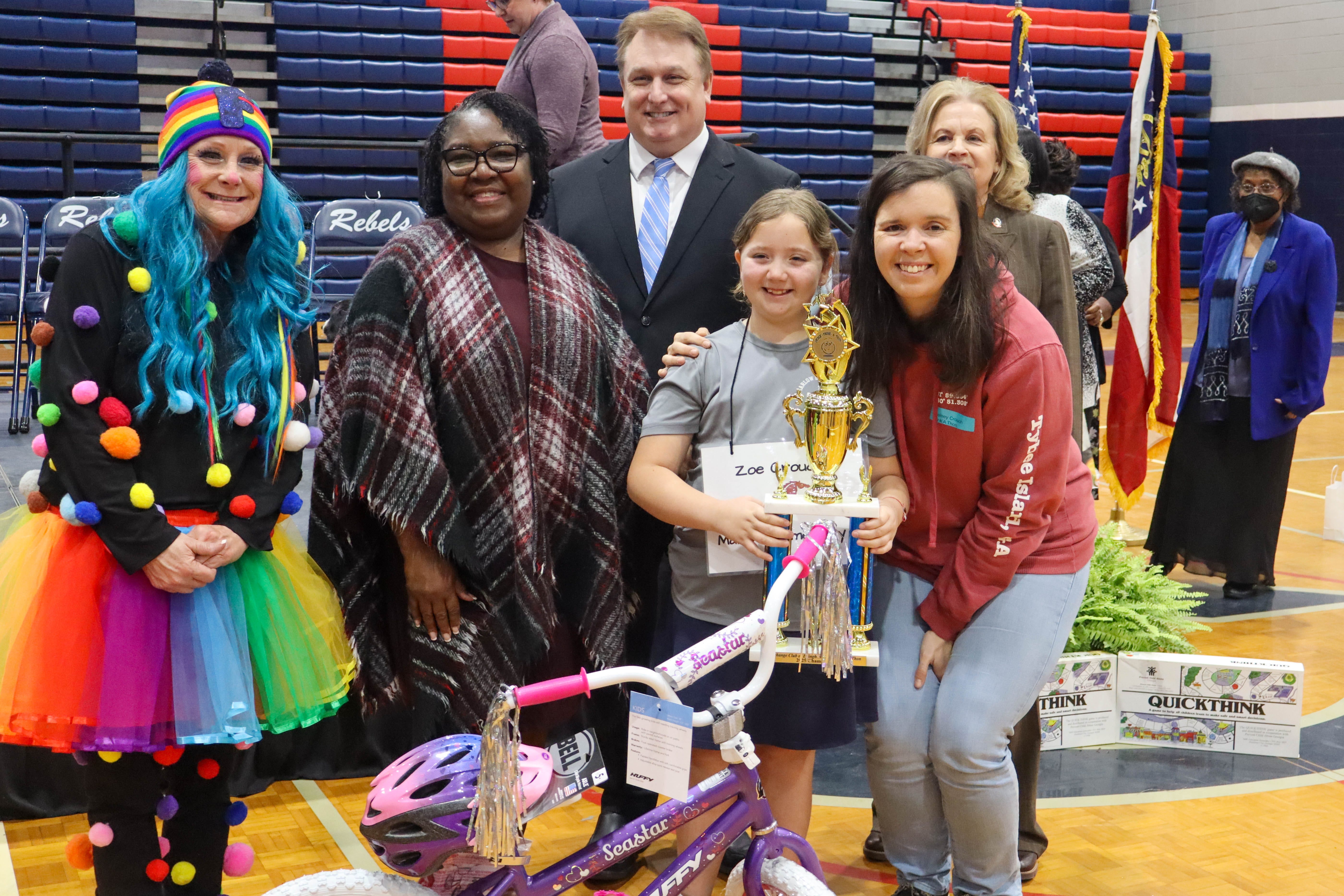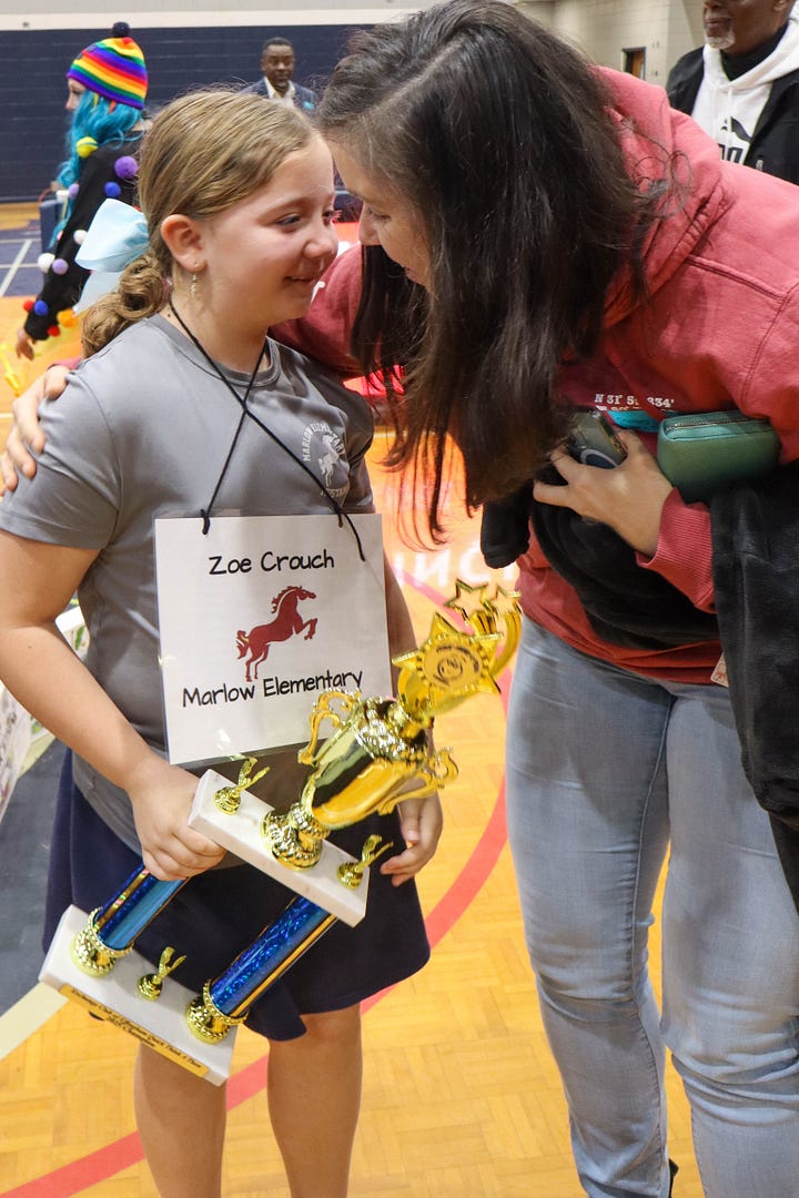 Zoe’s big news in March was her participation in a competition called the Quick-think-a-thon, which included all the second graders in our school district. I went to the finals not expecting to be photographed when Zoe WON the entire thing.