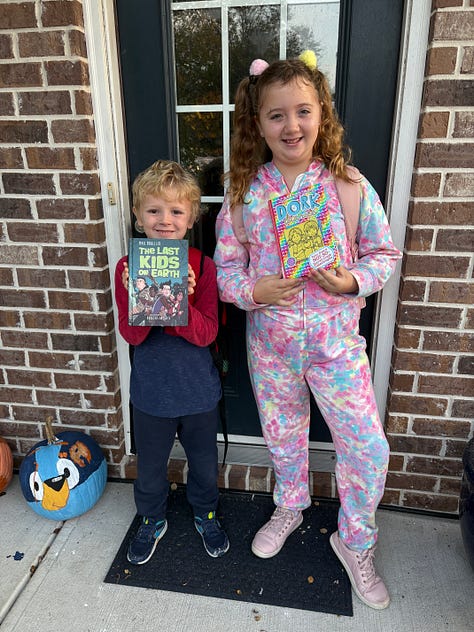 Our family also got to go watch the boys march in the county parade (which is a much bigger deal than I would have expected) and we went to the county fair afterward. I go to go to a haunted outdoor event with some friends, which was slightly out of my comfort zone but turned out to be amazing. And the kids dressed up for Halloween, in costumes well-suited to their personalities.