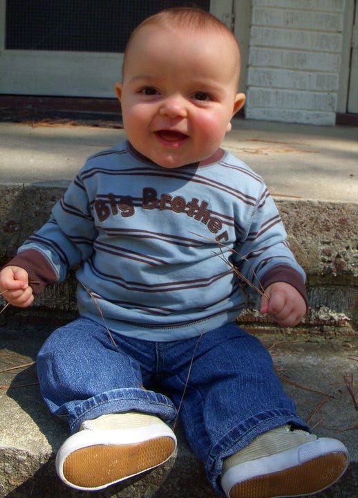 I still remember the weight of him, pudgy legs sticking out of red cotton overalls, little hands relaxed as he slept in my lap. It was past nap time, and I had been trying so hard to get 9-month-old Stephen on a schedule. I knew he wouldn’t nap as long in my lap as he would at home, and this would probably mess up the schedule for the rest of the day.